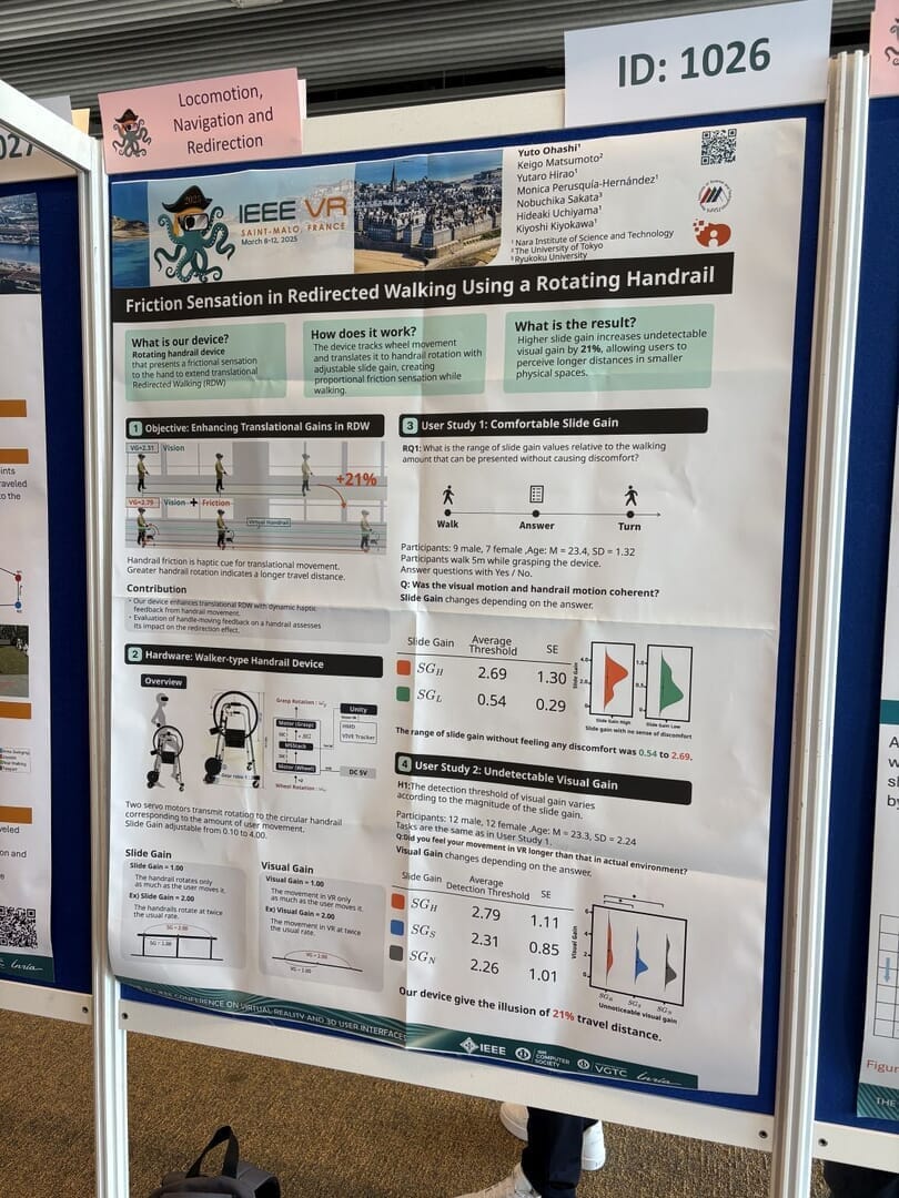 We presented eight research projects at IEEE VR 2025, a premier conference in the field of XR, held in Saint-Malo, France, from March 8th to 12th, 2025.