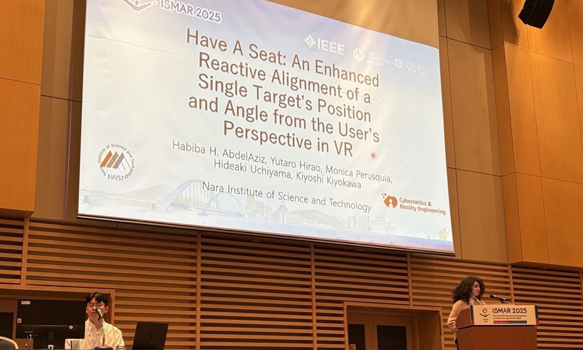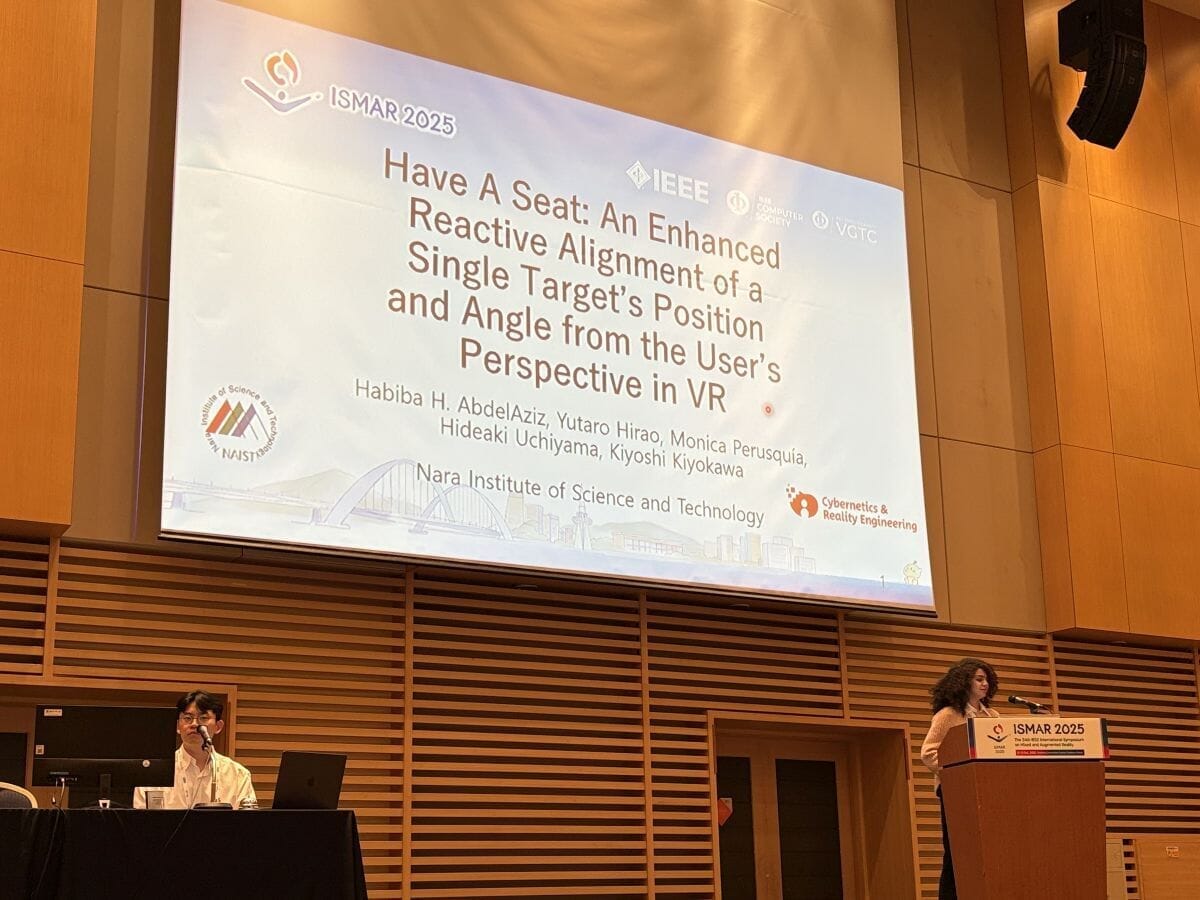 Our alumnae Ms. Hu and Ms. Hesham, and a collaborator Ms. Steininger had their work accepted as Full Papers and gave oral presentations. Additionally, Mr. Jie from the Interactive Media Design Lab at NAIST gave an oral presentation for his paper accepted in TVCG.